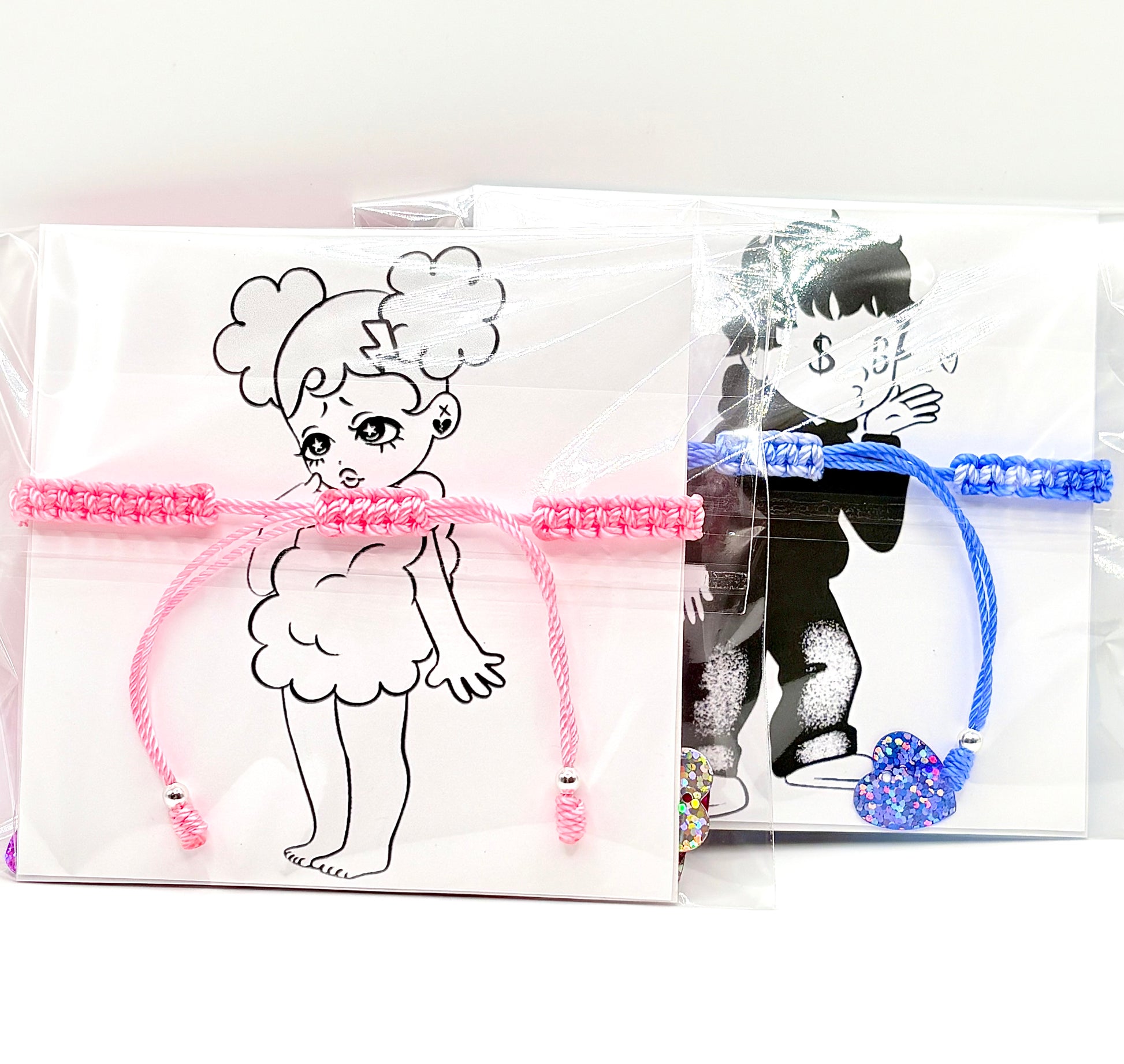 Comes with matching bracelets, chocolate, and a coloring page! 🩷💙